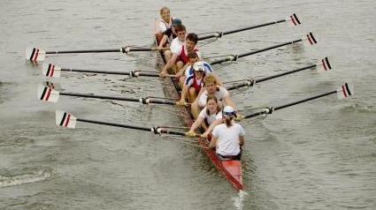 Gutes Taktgefühl ist gefragt. Im Mixed-Achter saß Claudia Reinelt (ganz hinten) einmal ohne ihre Partnerin Theresa Hanke. Foto: Volkmar Könneke
