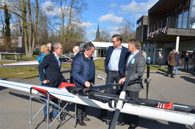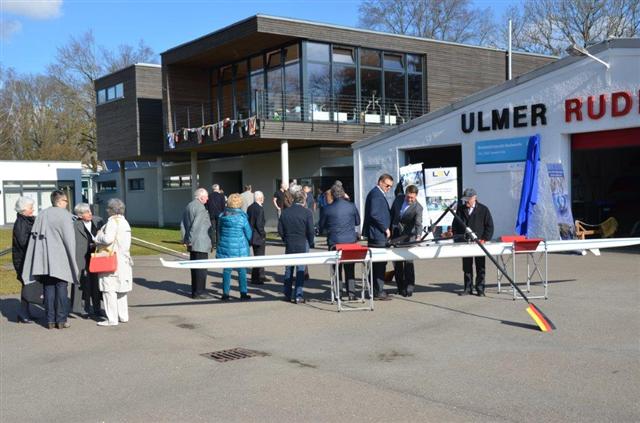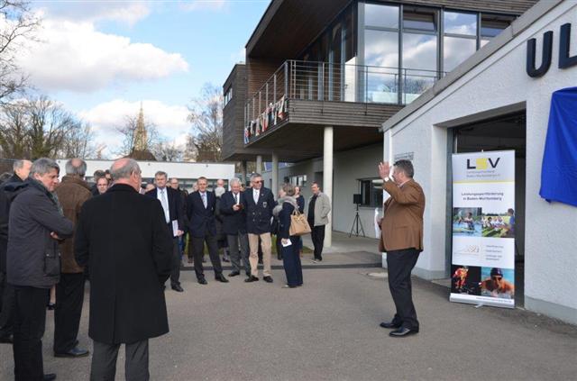 Zuerst wurde 2010 die Hardware erstellt mit dem Neubau des URCD-Leistungszentrums und jetzt kam 2014 sozusagen die Software dazu: die Eröffung des Bundesstützpunkt Ruderns, der mit vollem Namen Bundesstützpunkt Nachwuchs Ulm/Süd, Standort Ulm heißt. Jetzt kommt zusammen, was zusammengehört. Der Ulmer OB Ivo Gönner, der die Planung von Anfang an begleitet hatte, bei der man immer beide Teile verknüpft sah, sagte es mit biblischen Worten: "Es ist vollbracht."