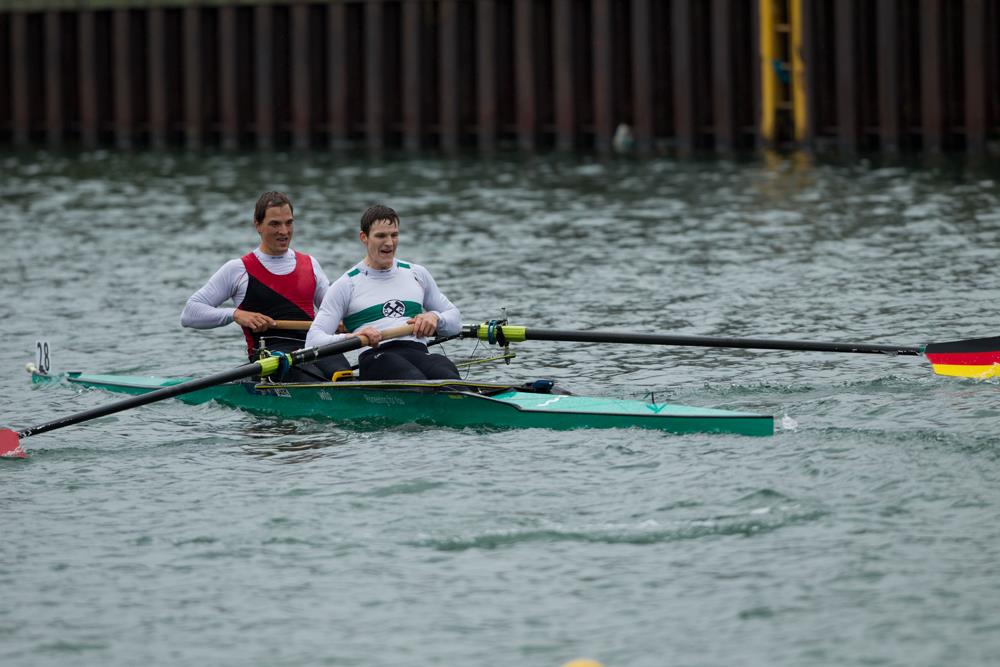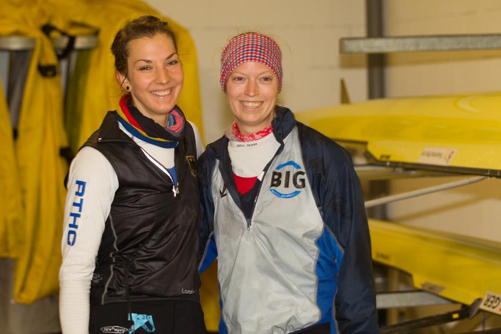 Schwierige Verhältnisse herrschten am Renntag. Regen und böiger Seitenwind der auf dem 6km langen Abschnitt des Dortmund-Ems-Kanal hohe Wellen auftürmte, erschwerte die Arbeit in den Kleinbooten. Viele Ruderer fanden da nur schwer in einen konstanten Rhythmus. Ein Boot zeigte sich den widrigen Bedingungen zum Trotz bestens aufgelegt: der Zweier-ohne mit Kerstin Hartmann und Kathrin Marchand. In 23:41 siegten sie überlegen vor der restlichen 20 Booten. Am nächsten kamen ihnen noch Julia Lepke und Anne Becker (Halle/Rostock) in 24:16. "Ich habe mich die Tage vorher nicht gut gefühlt, aber heute lief alles optimal", sagte eine sichtlich zufriedene Kerstin Hartmann. "Etwas schade war, dass wir den Streckenrekord um 3sec verfehlten". Mit diesem Resultat rückt die Olympiateilnahme für die Beiden ein großes Stück näher. "Ich verstehe mich mit Kathrin im Boot und an Land super gut. Wir möchten gerne bis Rio zusammen im Zweier bleiben." Angesichts ihres großen Vorsprung auf die Konkurrenz dürfte den Verantwortlichen im Verband kaum an personellen Experiment liegen. Alles deutet darauf hin, dass Hartmann und Marchand ungestört ihre gute Arbeit fortsetzen können. Bootstrainer Werner Nowak (Dortmund) sieht das ähnlich: "35 Sekunden Vorsprung auf das nächste Boot – das unterstreicht die Klasse der Beiden". Schon diesen Mittwoch brechen Hartmann, Marchand und Nowak für drei Wochen ins Trainingslager nach Sevilla auf.