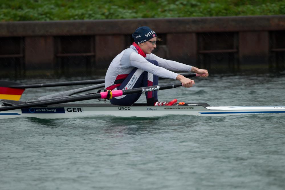 Das Wunschergebnis von Leichtgewicht Lena Müller wäre der vierte Platz gewesen. Dies deshalb, weil für die leichten Damen vier Plätze für die nächsten Trainingsmaßnahmen in Südeuropa zur Verfügung stehen. In Dortmund musste sich die Sportstudentin fünf Sekunden hinter der Judith Anlauf (Hamburg) mit dem fünften Rang begnügen. In den nächsten Tagen wird sie von den Verantwortlichen erfahren, ob sie mit nach Portugal darf. Erwartungsgemäß siegte hier Marie-Louise Dräger (Rostock) vor Anja Noske (Saarbrücken) und Ronja Sturm (Brandenburg).