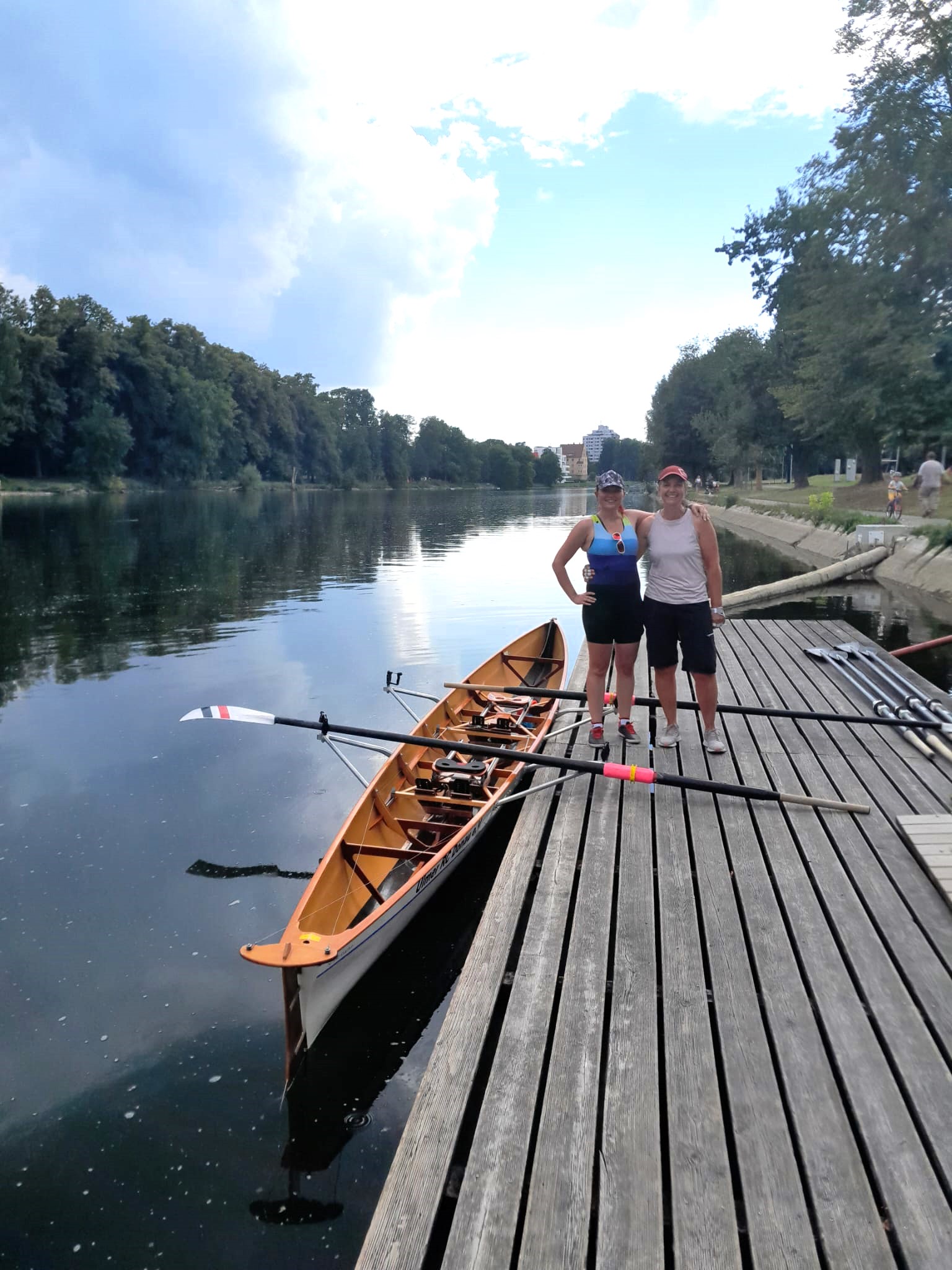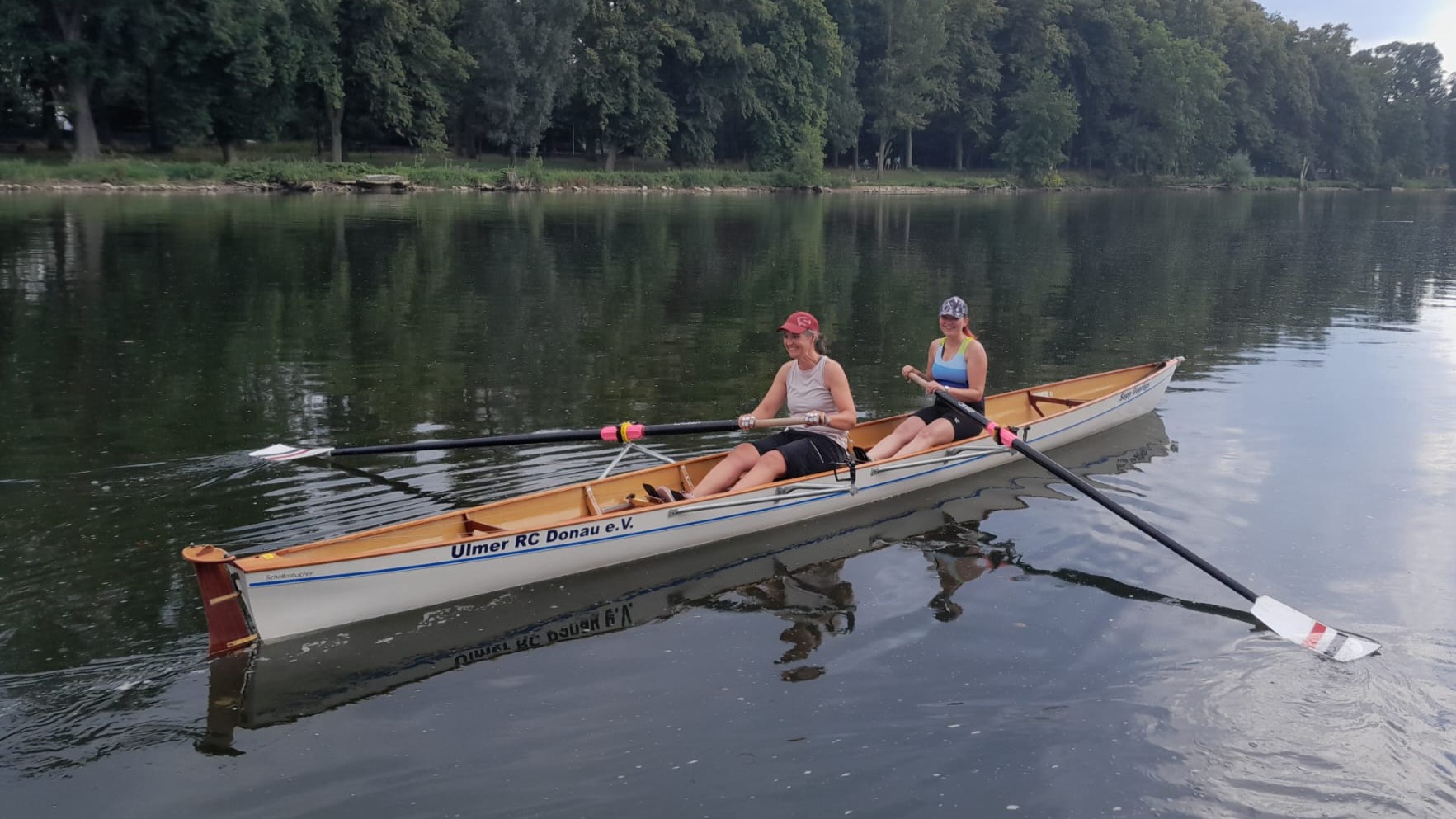 Trotzdem ist es auch im URCD nie zu spät. Eine kleine Breitensportriemengruppe hat sich am Freitag etabliert, aber auch andere Termine sind möglich. Einzige riemenfähige Boote in diesem Bereich waren bis vor kurzem die Aphrodite und der Sepp Geprägs, dank Doppeldollen. Ohne vorhandenes Fußsteuer sollte wenn möglich ein Steuermann an Bord sein, der Defizite beim Ziehen ausgleichen kann. Seit kurzem hat aber auch die Elbe, ein Boot mit Fußsteuer, Doppeldollen. Insgesamt sind das schon 10 Rollsitze im Gig-Riemenbereich. Und wenn mal mehr Leute auf den Geschmack gekommen sind, kann der URCD-Gigachter auch mal eine Weile auf Riemen umgeriggert werden.