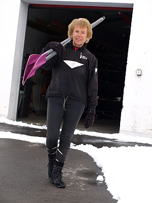 Es ist Freitagnachmittag, Viertel vor drei: Das Thermometer scheint bei null Grad Celsius einzufrieren, dunkelgraue Wolken beherrschen das Himmelsszenario, und aus dem Osten weht ein leichter, aber eisiger Wind. Noch liegt viel Schnee auf den Wegen. So sieht wohl ein Tag aus, an dem man sich ungern im Freien aufhält. Gudrun Vetter-Thanner sieht das ganz anders. Sie steht in der Bootshalle des Ulmer Ruderclubs und hat sich aufs Rudern vorbereitet. Die zierliche Ulmerin trägt eine enganliegende anthrazitfarbene Ruderhose, darüber eine schwarze Windjacke. Die eleganten Ruderschuhe – ebenfalls in Schwarz – sind eng geschnürt und erinnern ein wenig an hoch geschnittene Mokassins. Gudrun verschränkt die Arme; man hat fast den Eindruck, als wären sie miteinander vertäut. Heute gibt sie sich wortkarg, verspürt nur wenig Lust auf ein Gespräch. Liegt es an der Kälte? Vielleicht, auf jeden Fall wartet sie auf andere Ruderer, mit denen sie einen Doppel-Vierer bilden kann. Doch niemand schaut bis jetzt herein. Ihr Blick geht in Richtung Donau, die träge dahin fließt, und nur einen Steinwurf entfernt liegt.