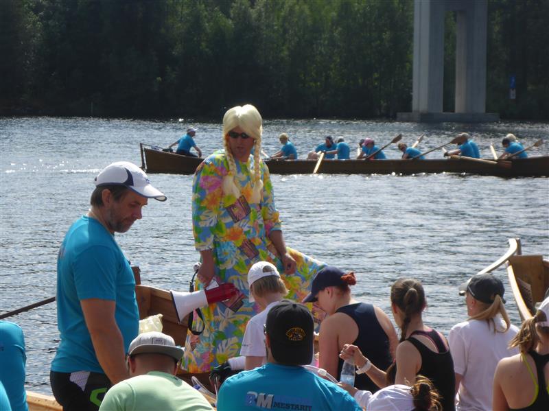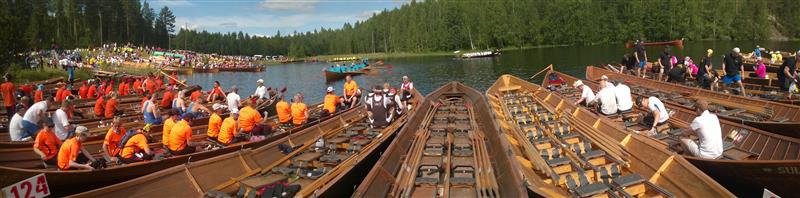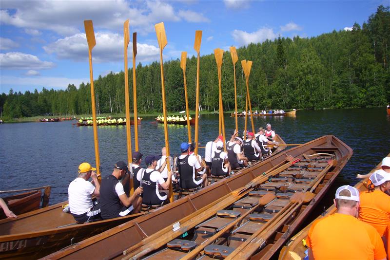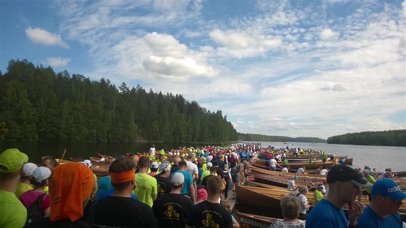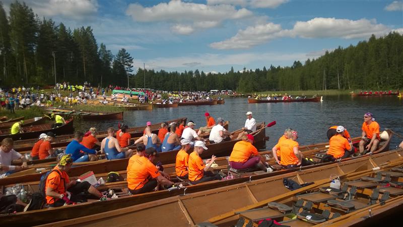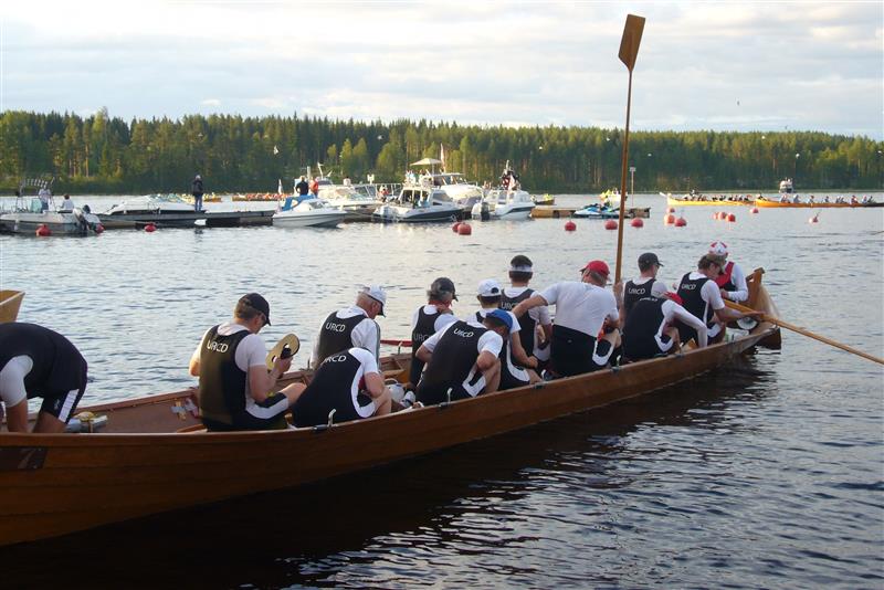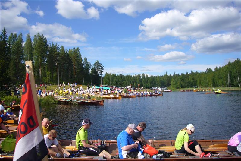 Im Club werden die zu einem Standard-Kirchboot gehörenden 14 Ruderinnen und Ruderer und ein Steuermann gesucht. Und so geht eine gemischte Mannschaft aus drei Frauen und 12 Männern im Alter zwischen 43 und 74 am Freitag, den 10. Juli 2015 um 16 Uhr mit Startnummer 124 von insgesamt 140 Kirchbooten an den Start des sogenannten 60-km-Nachtrennens. Richtig Nacht wird es zwar zu dieser Jahreszeit so weit im Norden nicht, doch von der Uhrzeit beim Zieleinlauf am Ruderstadion von Sulkava kann es bei den letzten Teams schon auf 23 Uhr zugehen, 2015 wird das letzte Team um 23:15 Uhr über die Ziellinie fahren.
