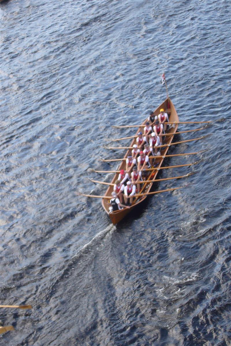 Der Vorteil des Speyrer Sonderkirchboots: es ist etwas breiter, man sitzt nicht so auf Tuchfühlung und man kommt sich daher nicht so leicht mit den Ellenbogen in die Quere wie beim finnischen Original. Und es sieht super aus. Der Nachteil: im Bereich des Mittelschiffs schiebt es eine große Welle, in der die Mittelschiffruderer leicht hängenbleiben. Außerdem kommt Johanna nicht so sehr ins Laufen und gleitet daher nicht so sehr auf dem Wasser, sondern hat deutlich mehr Boden- bzw. Wasserhaftung. Eine Geschwindigkeit von mehr als 12 km/h laut GPS war am Bodensee auch unter größter Anstrengung nicht drin.