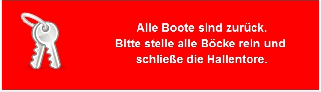 Auch wenn einem Aufräumen nicht so liegt, dürfte die Sicherheit der Boote einem bestimmt am Herzen liegen. Deshalb sollen die Hallentore nachts (gefühlt) zu sein, und alles tragbare Club-Material in den Hallen verstaut sein. Auch wenn man vielleicht seit der Pubertät eine Abneigung hat gegenüber jeder Anweisung durch andere, in der Gemeinschaft eines Clubs macht man das, was man tut, nicht nur für sich selbst, sondern für alle. Und sei das bei der Putzete, beim Donau-Cup, beim Aufbau des Neubaus vor wenigen Jahren, und eben auch am Tagesende beim Zumachen der Bootshallen.