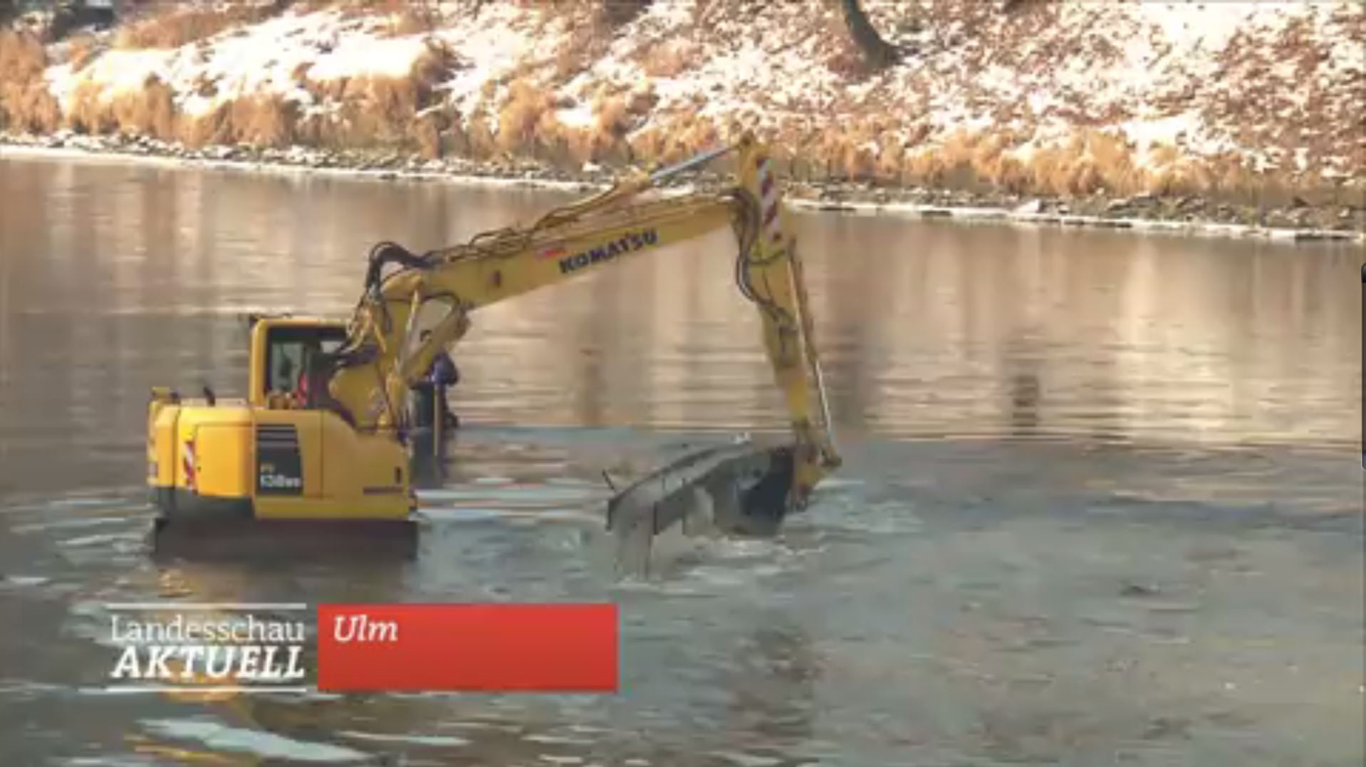 Durch die wochenlange Trockenzeit war der Wasserspiegel der Donau zuletzt so niedrig, dass am Samstag, den 28. Januar 2017 endlich einmal diese Gefahrenstelle beseitigt werden konnte. Ein normaler Raupenbagger war im Flussbett der Donau unterwegs und konnte diesen Rest der Schillerbrücke aus dem Flussgrund herausbaggern. Der SWR berichtete darüber in der Landesschau Baden-Württemberg vom 28.1.2017 (ab 10:53).